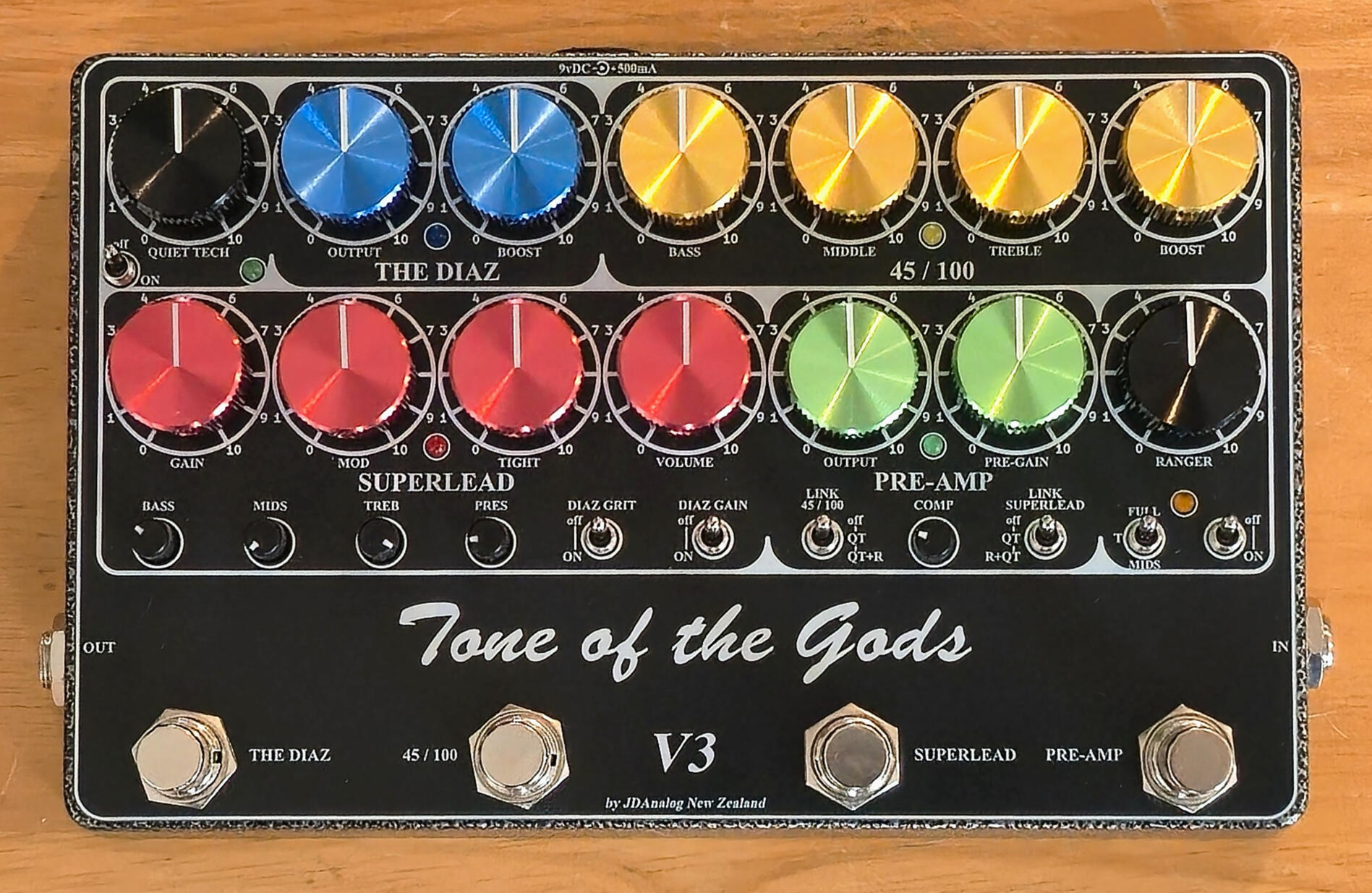 The Tone Of The Gods Version 3 Pedal is a very high quality multiple channel pedal, crafted in New Zealand with precision.