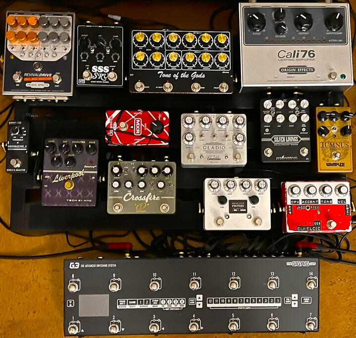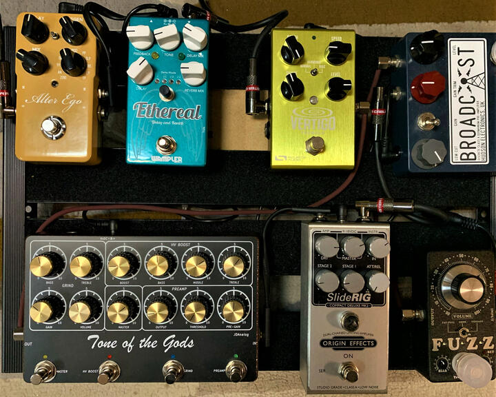 Mr Angle. Tone Of The Gods Version 2 and Version 3 and Vibe of the Gods Pedal on same pedal board together. January 2025